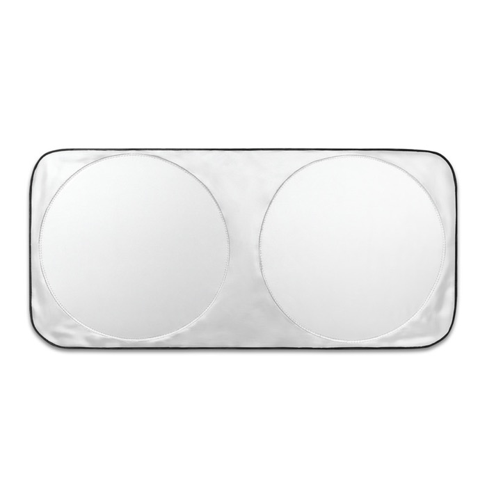 Parasol para coche de poliéster 210D con formato redondo y dos áreas circulares de 65cm de diámetro, pensado para reducir la entrada directa de sol en el interior del vehículo. Su diseño facilita colocarlo y retirarlo en el día a día, especialmente en jornadas de calor. Se entrega con bolsa a juego de poliéster 210D, práctica para guardar y transportar sin ocupar apenas espacio. Opción adecuada para campañas de verano, acciones en concesionarios o regalos corporativos para flotas.
