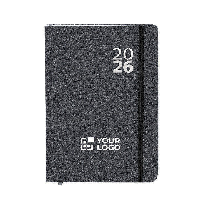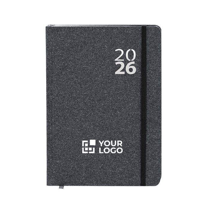 Agendas con logotipo de cuero reciclado con vista diaria y cierre A5