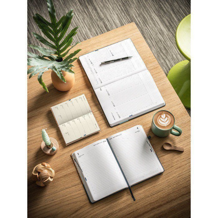 Agendas con logotipo de cuero reciclado con vista diaria y cierre A5