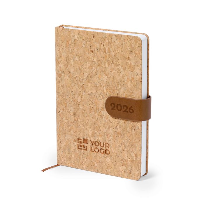 - Agenda de corcho natural con cierre magnético en PU marrón