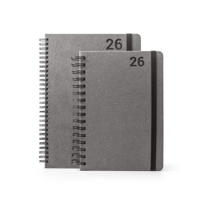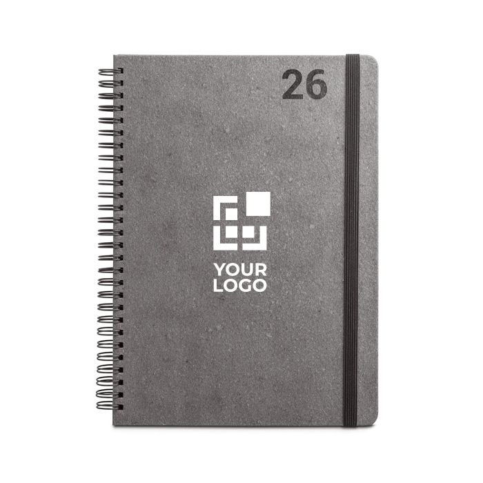 Agendas con logotipo de cuero reciclado con vista diaria y cierre A5