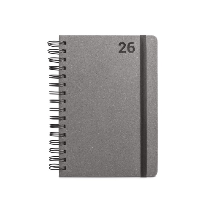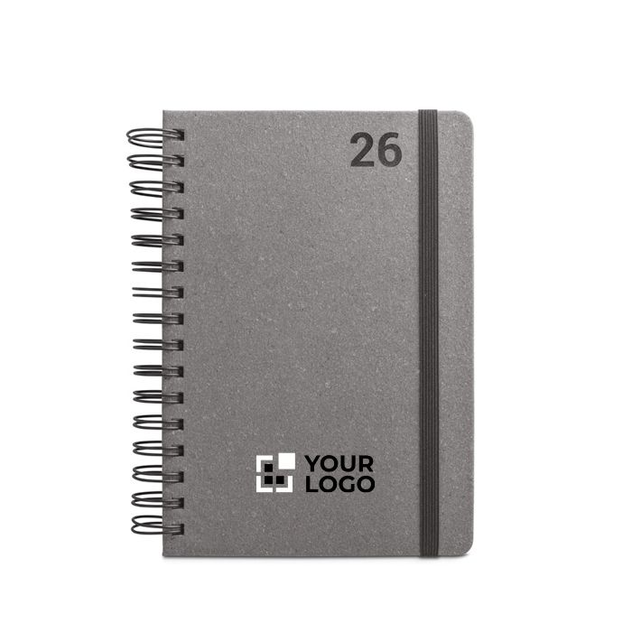 Agendas con logotipo de cuero reciclado con vista diaria y cierre A5