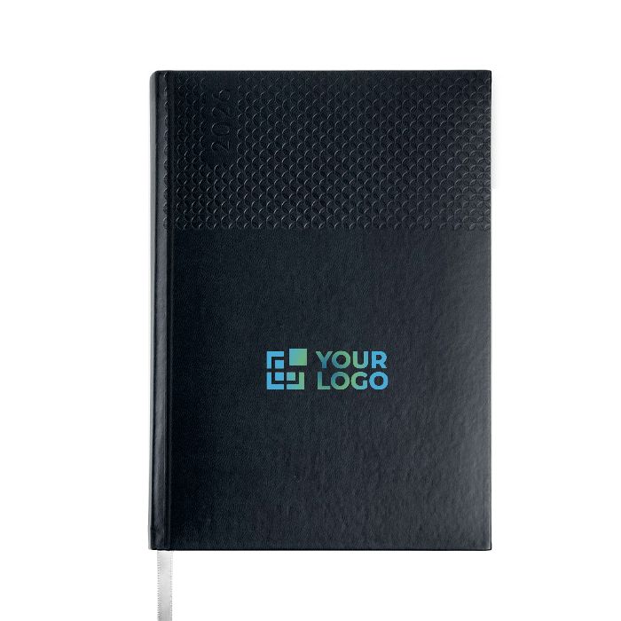 Agenda con logotipo de cuero reciclado con vista diaria y cierre A5