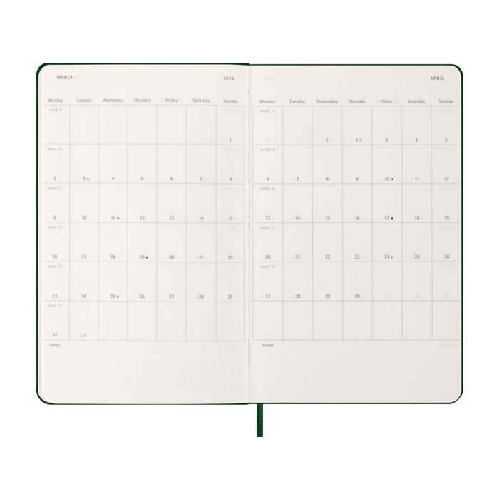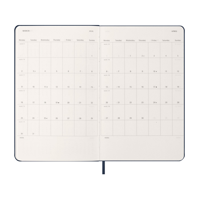 - Agenda diaria Moleskine con planificación de enero a diciembre 2026