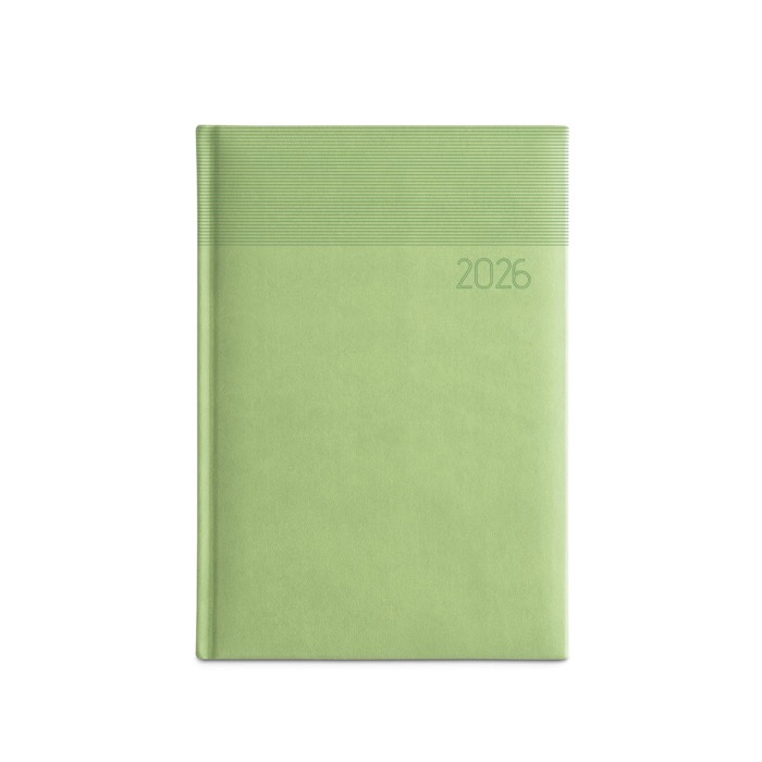 Una agenda de cuero sintético en tamaño A5, con un estampado personalizable para 2026, te ofrece una herramienta de planificación con estilo. Puedes elegir entre varios colores para el estampado, lo que refuerza la identidad de tu marca. El interior a dos colores y el papel blanco proporcionan un contraste visual que facilita la lectura. Con una página por día, te permite organizar tus citas, tareas y proyectos con eficiencia, manteniendo un registro claro de tus compromisos. Al ofrecer esta agenda, tu empresa no solo apoya la productividad, sino que también comunica una imagen de modernidad y buen gusto, fortaleciendo la lealtad.