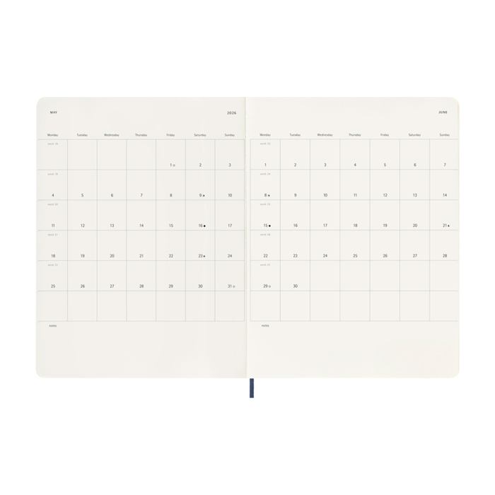 - Agenda semanal Moleskine con vista semana y página de notas