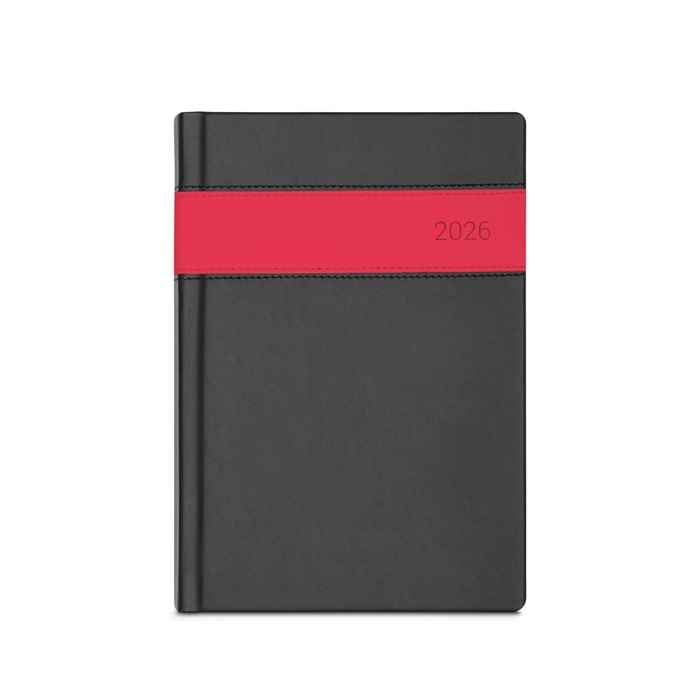 Una agenda de cuero sintético en tamaño A5, con un detalle de color, te permite organizar tu jornada laboral con un toque de distinción. Incluye un punto de cinta que facilita el acceso rápido a tus anotaciones diarias. Su diseño elegante se integra en cualquier entorno de oficina, mientras que el espacio interior a 2 colores te ayuda a registrar reuniones, tareas y plazos de manera clara. Con una página por día, mejora tu productividad personal y proyecta una imagen de marca sofisticada, reforzando la conexión con tus clientes y empleados mediante un obsequio práctico y estético.