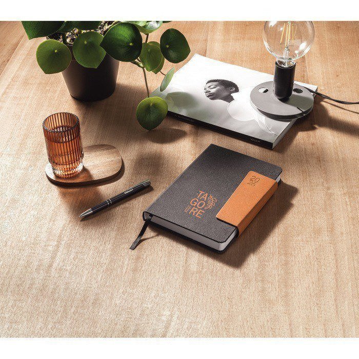 Una agenda bicolor en piel reciclada en tamaño A5, con cierre magnético y bolígrafo, te ofrece una solución completa y elegante. Su diseño bicolor y el portalápices integrado realzan su utilidad, mientras que el marcador de cinta te ayuda a ubicar rápidamente tus notas. La piel reciclada subraya el compromiso de tu marca con la sostenibilidad. Además, se suministra con una bolsa non-woven, añadiendo un toque de distinción. Al ofrecer esta agenda, tu empresa no solo facilita la organización diaria, sino que también proyecta una imagen moderna y consciente.
