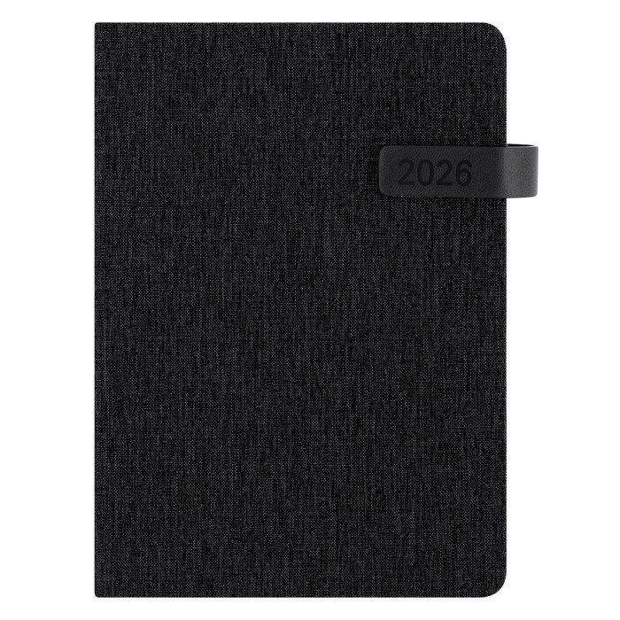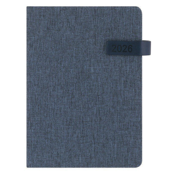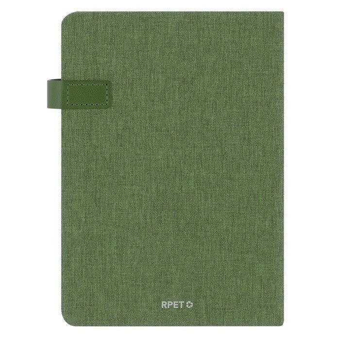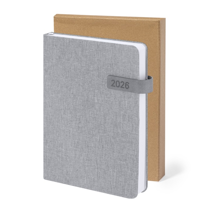 Agenda A5 fabricada en poliéster reciclado RPET. Las cubiertas rígidas ofrecen durabilidad, mientras que el efecto bitono añade un toque de elegancia. El cierre magnético de PU asegura que tus notas estén siempre protegidas, y el marcapáginas a tono facilita el acceso rápido a tus páginas. Con un diseño de página por día, esta agenda permite una planificación detallada, e incluye una zona de anotaciones para ideas adicionales. Disponible en castellano e inglés, es ideal para entornos multiculturales. Presentada individualmente, es perfecta para reuniones corporativas o como herramienta de planificación diaria en oficinas.