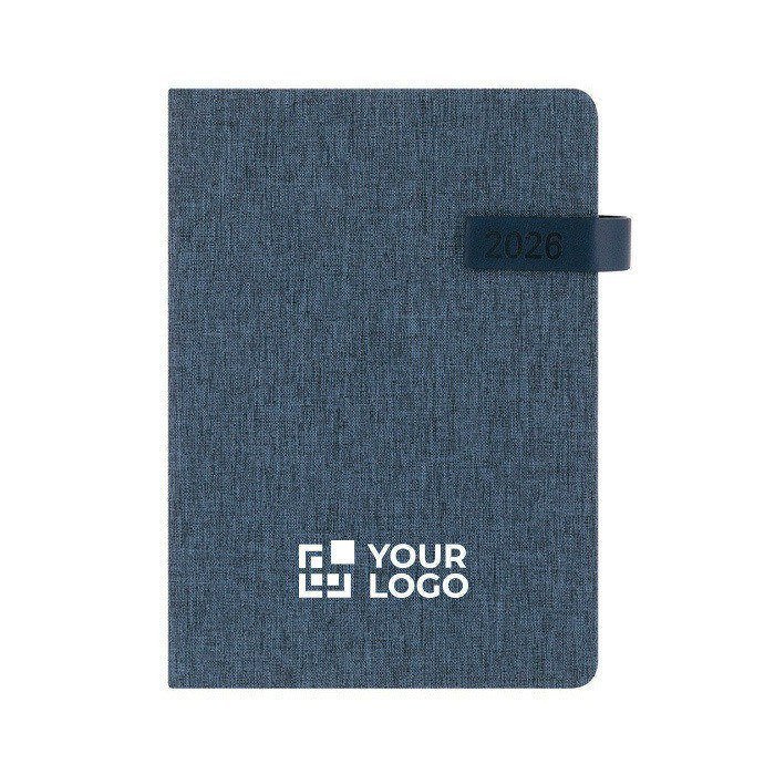 Agenda con logotipo de cuero reciclado con vista diaria y cierre A5