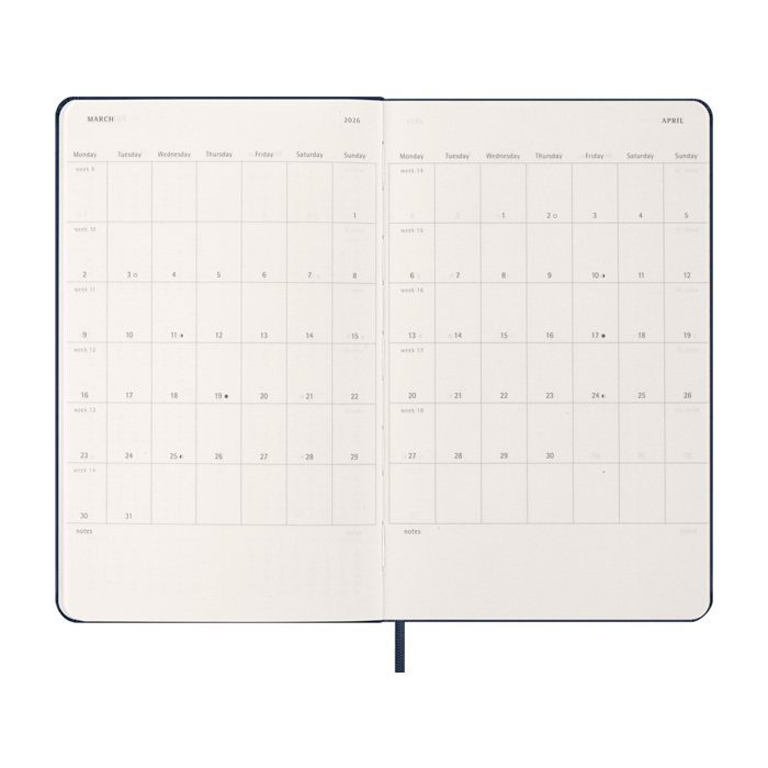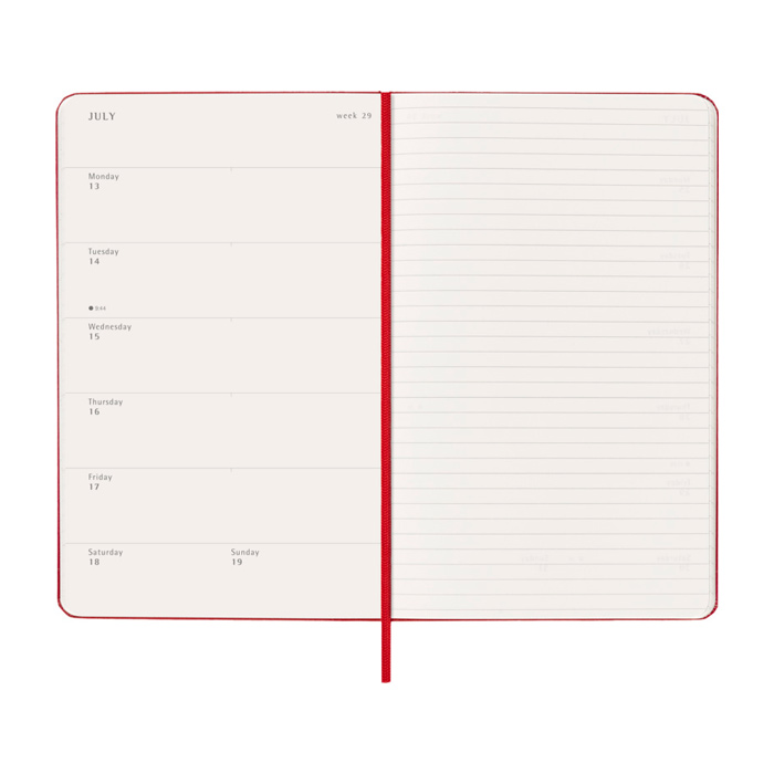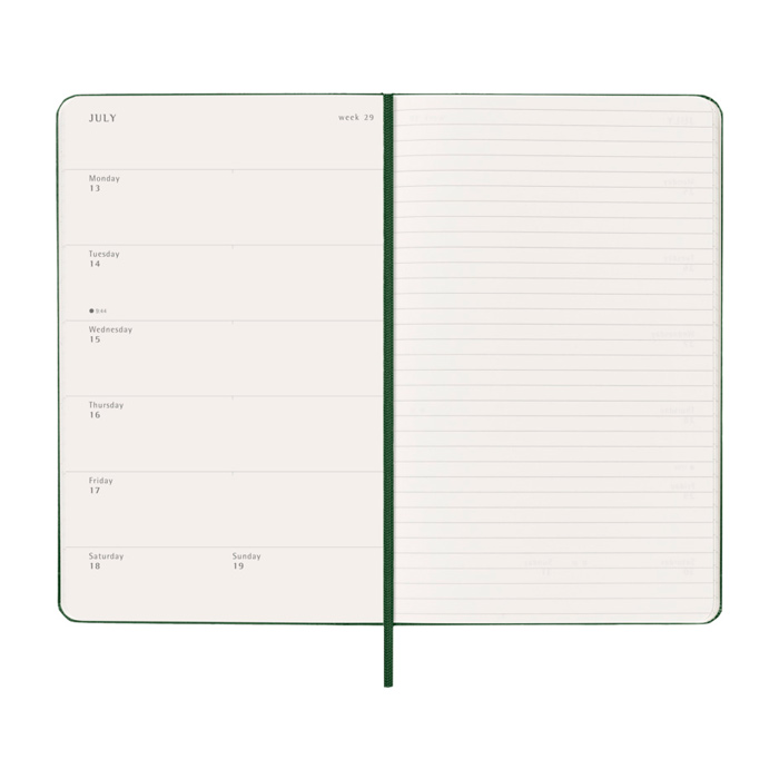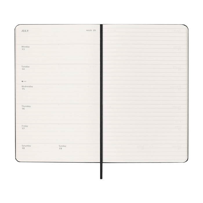 - Agenda semanal Moleskine con semana vista y página de notas opuesta