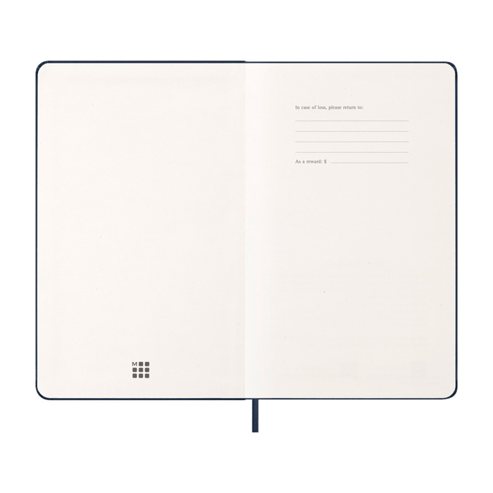 - Tapa dura con cierre elástico, cinta marcapáginas y bolsillo interior