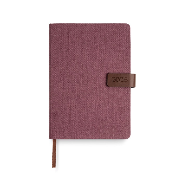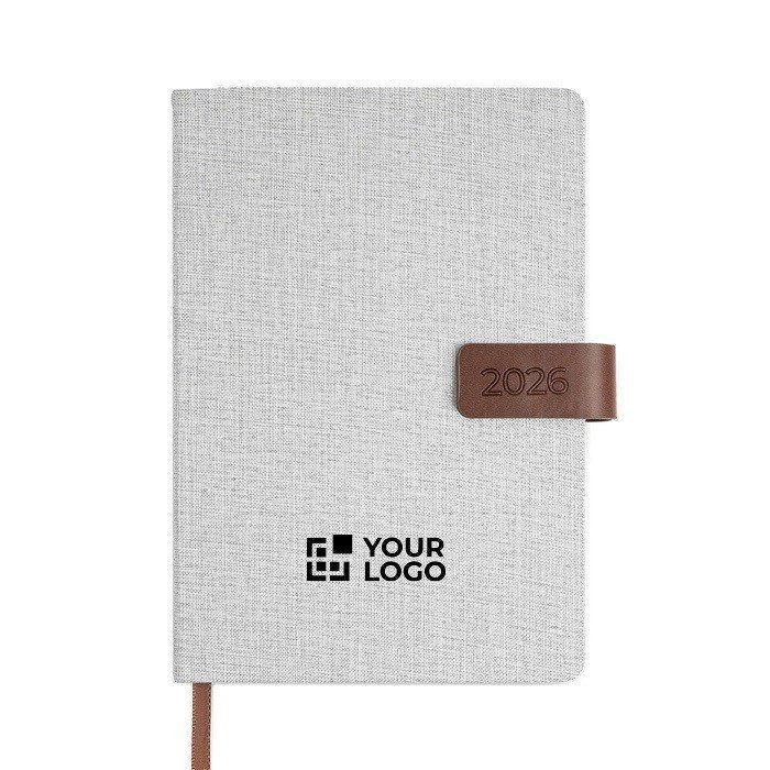 Agenda con logotipo de cuero reciclado con vista diaria y cierre A5