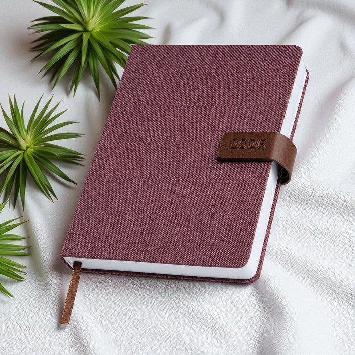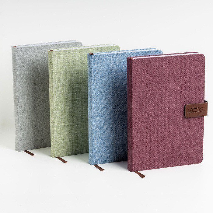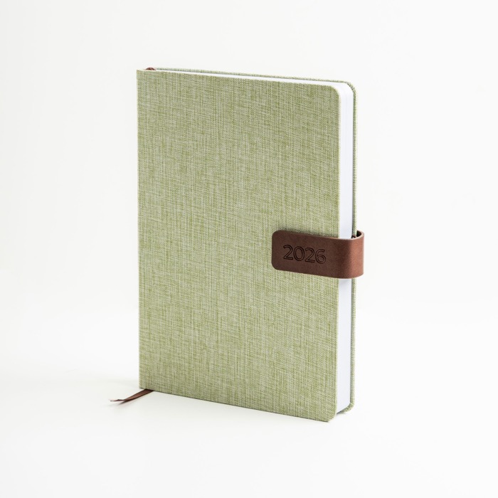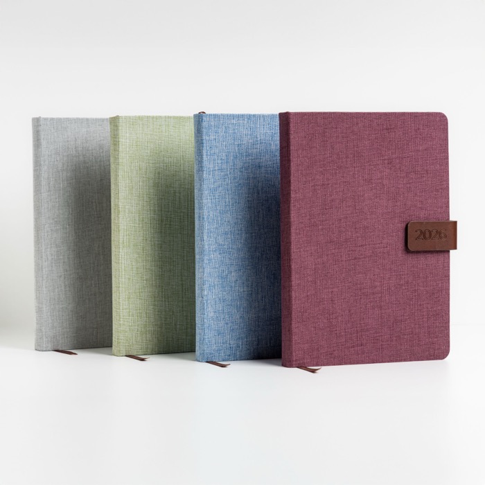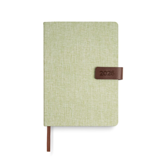 - Agenda diaria A5 con funda de lino y cierre magnético