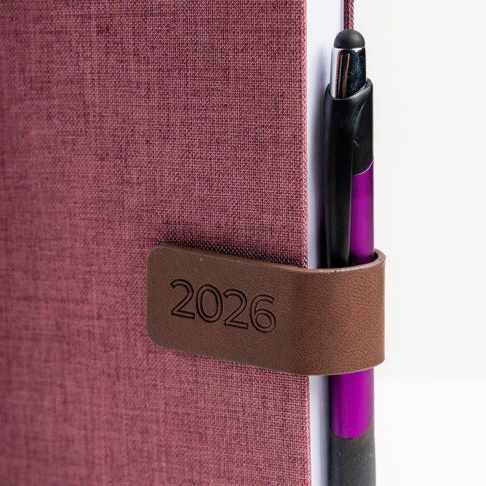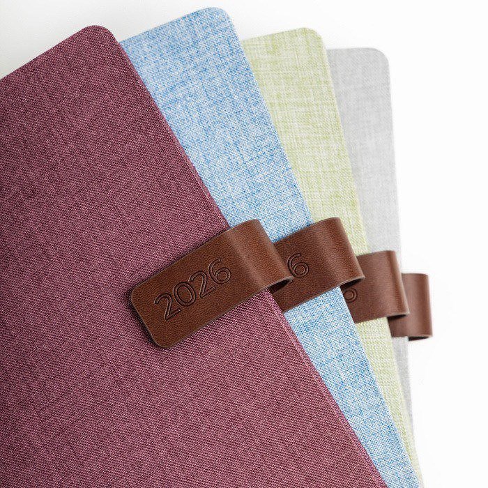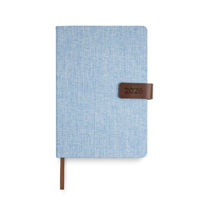 Agenda diaria A5 de Revisar Marca, fabricada con 336 páginas de papel blanco de 70 g, certificadas por el FSC (Forest Stewardship Council), garantizando un origen responsable. La funda de lino, con un elegante detalle de PU, se cierra de manera segura gracias a su cierre magnético. Incluye un porta bolígrafo y una cinta del mismo color que la agenda, aportando un toque de cohesión visual. Disponible en portugués y español, ofrece espacios para datos personales, un calendario completo de 2026, semestres de 2025 y 2027, lista de festivos, plan de vacaciones, y un plan diario de 2026. Además, cuenta con un espacio para contactos importantes de la A a la Z. Ideal para empresas que buscan una herramienta de organización completa y eficiente, perfecta para planificar reuniones, eventos corporativos o campañas de marketing.