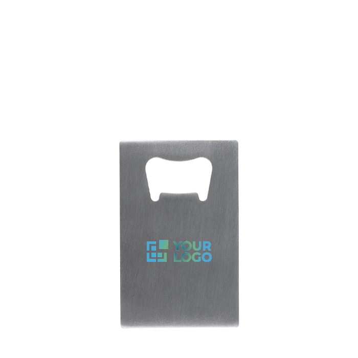 Abridor de botellas fabricado en metal, diseñado con la forma de una tarjeta de crédito. Su diseño delgado permite llevarlo fácilmente en la billetera o el bolsillo, asegurando que siempre esté a mano cuando se necesite. Ofrece un amplio espacio para personalizar con la marca de su empresa, convirtiéndolo en un artículo promocional efectivo. Ideal para eventos corporativos, ferias comerciales o como regalo para clientes, este abridor combina funcionalidad y visibilidad de marca, asegurando que su empresa esté presente en cada ocasión social.