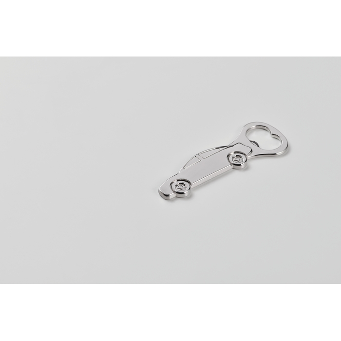 - Abrebotellas metálico con forma de coche y acabado sólido