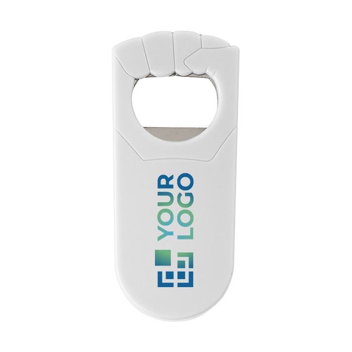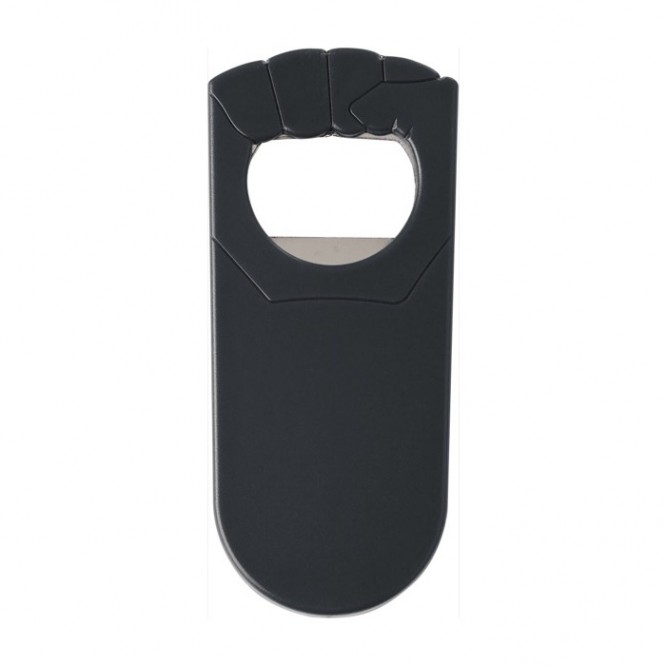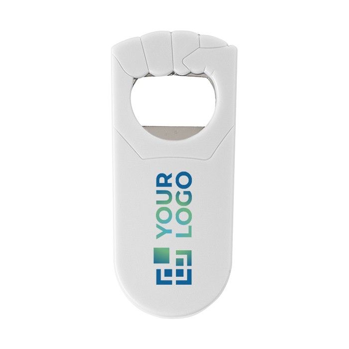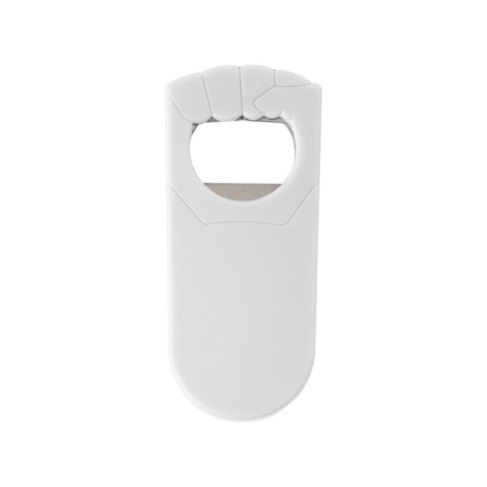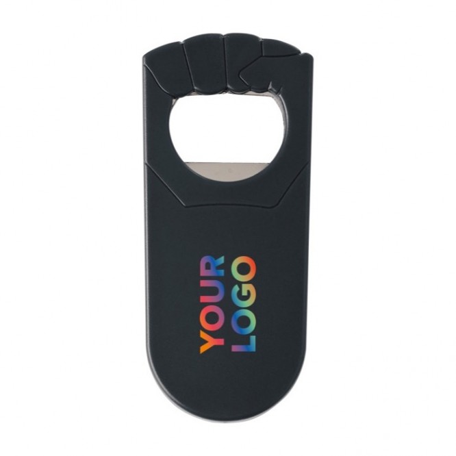 Un abrebotellas de plástico y metal con forma de puño es un regalo publicitario original y llamativo. Su diseño distintivo captará la atención, asegurando que tu logotipo destaque y sea recordado. La parte trasera tiene función de tapón, lo que lo convierte en un accesorio práctico para cualquier cocina o bar. Al personalizarlo, tu marca estará presente en momentos de ocio, reforzando el reconocimiento de tu empresa y generando una conexión divertida con tu audiencia en diversos contextos de uso.