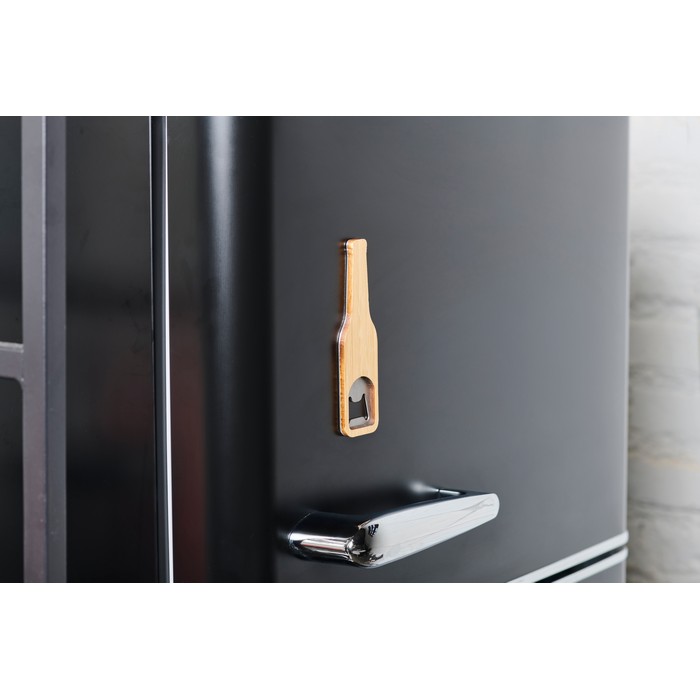Abrebotellas magnético de bambú en forma de botella de cerveza
