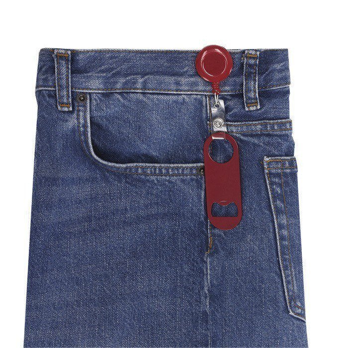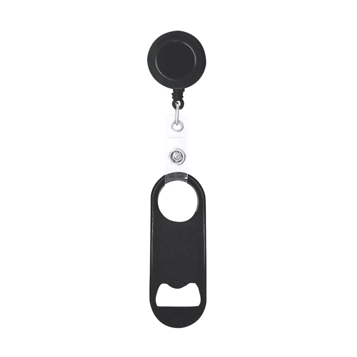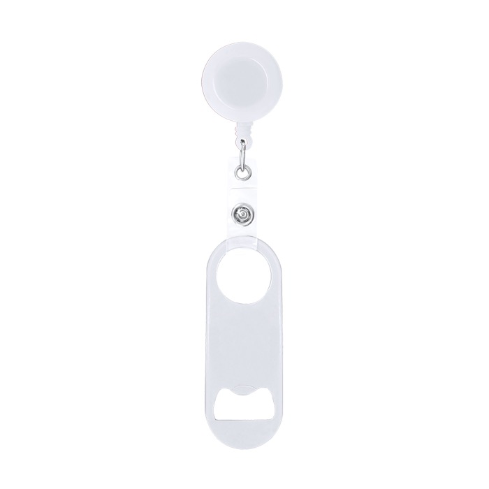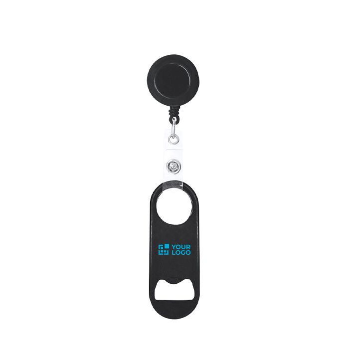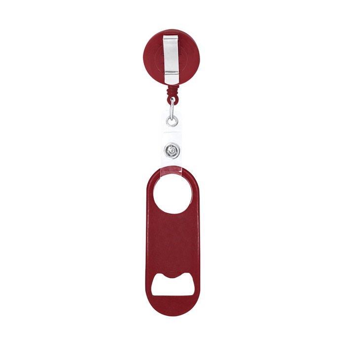 Abridor de acero con acabado metálico brillante y diseño pensado para el uso diario en eventos y hostelería. Incluye un extremo con abridor de botellas y, en el opuesto, un orificio circular que se conecta mediante cierre a presión a un soporte retráctil de 65cm con clip. Permite llevarlo colgado para reducir extravíos y agilizar el trabajo en barra o en puntos de atención. El cierre desmontable facilita usar solo el abridor o engancharlo por separado a un lanyard en acciones corporativas.