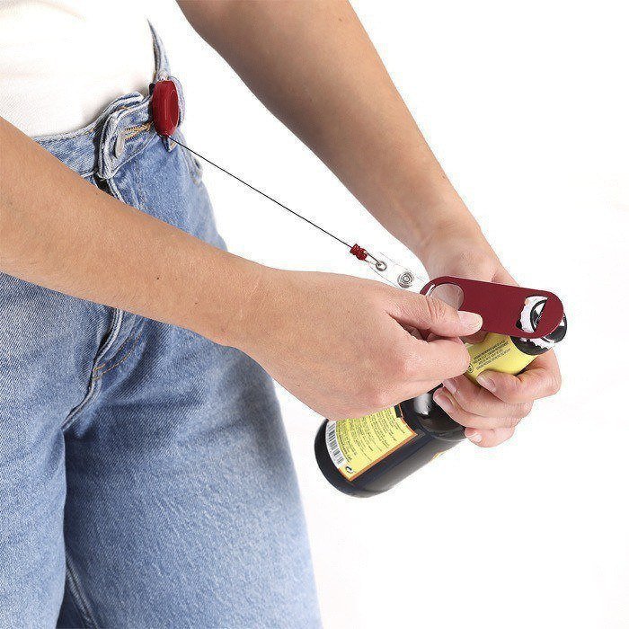 Abridor de botellas de acero con soporte retráctil y clip 65cm