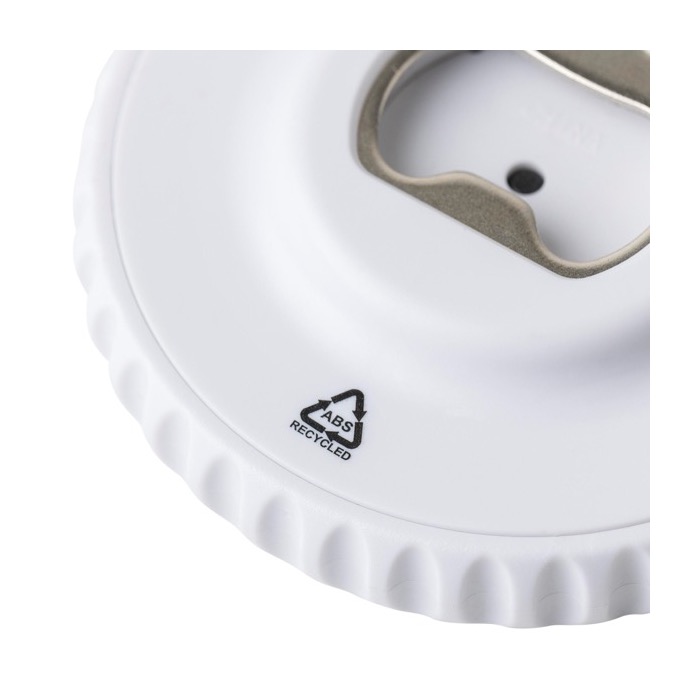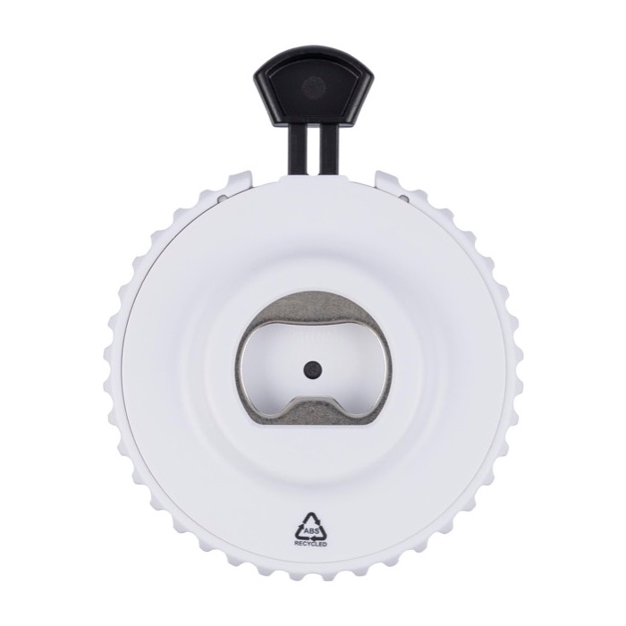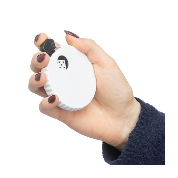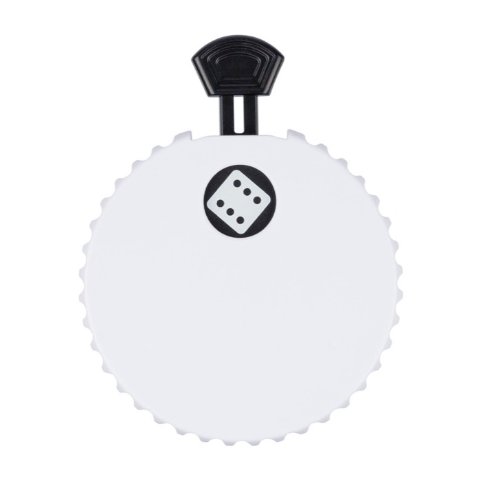 Dados mecánicos de plástico reciclado con pulsador superior para accionar el mecanismo interno y mostrar un número aleatorio del 1 al 6. Incorpora abrebotellas en la parte trasera, lo que permite usarlo también como detalle práctico en reuniones informales o eventos. Incluye un pequeño logotipo del material en el propio cuerpo y se entrega con presentación en bolsa de polietileno reciclado. Una opción útil para acciones de marca en ferias, campañas de captación o dinámicas de equipo.