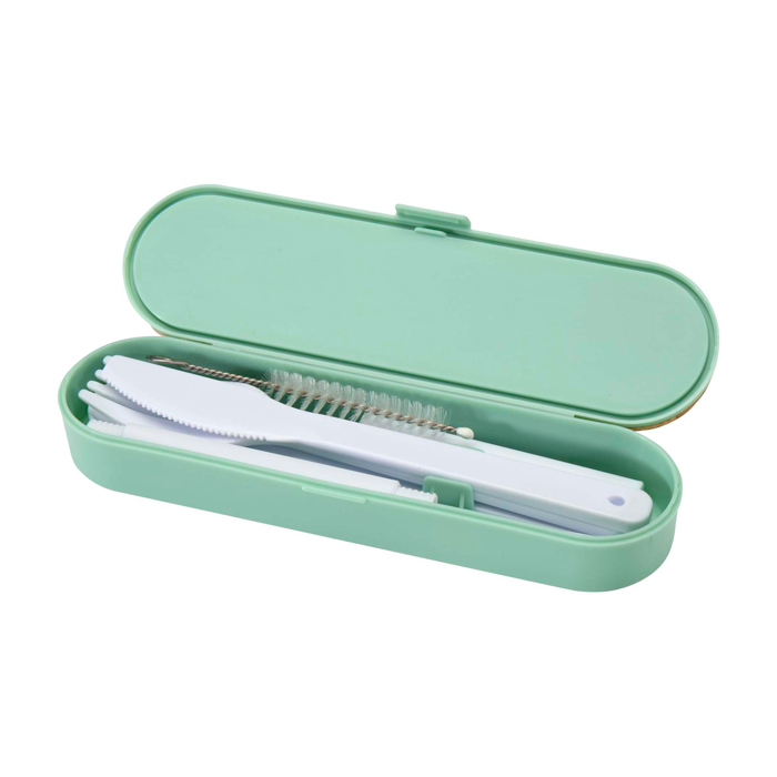 - Juego de cubiertos reutilizables con estuche compacto