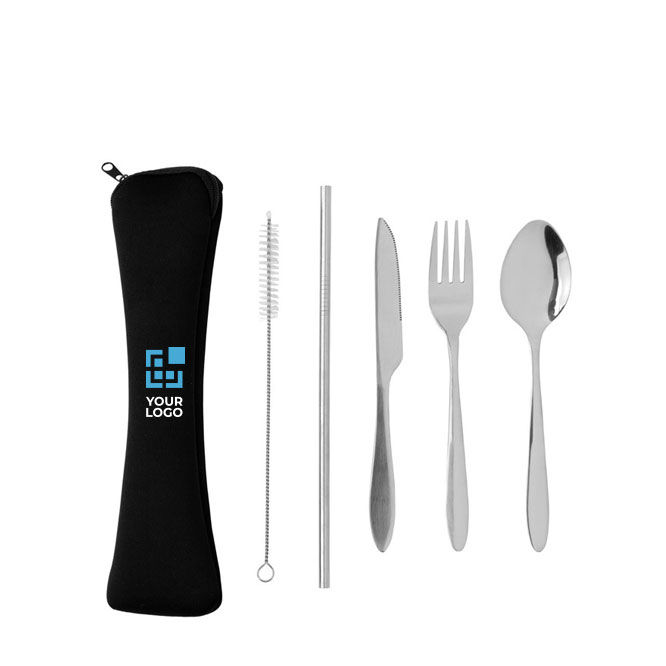 Set de cubiertos personalizados en acero con funda de neopreno