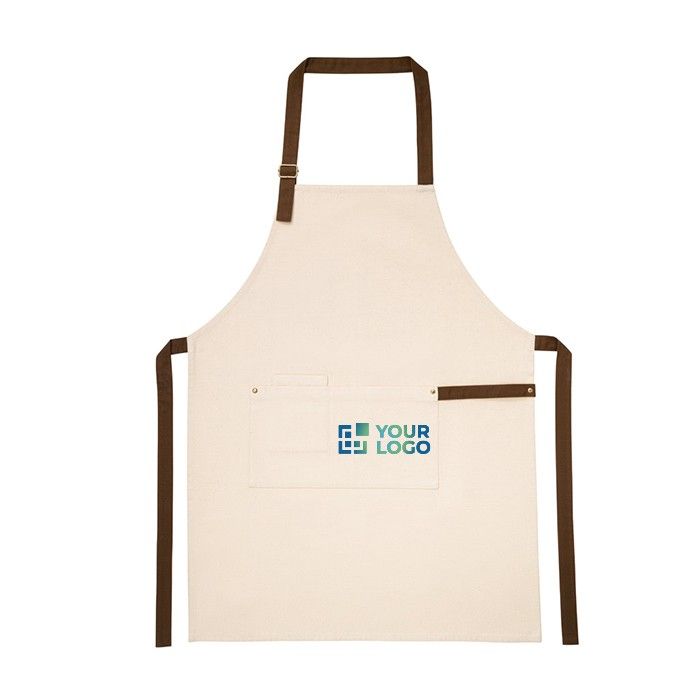 Delantal de lona con detalles metálicos y bolsillos versátiles para personalizar con tu logotipo