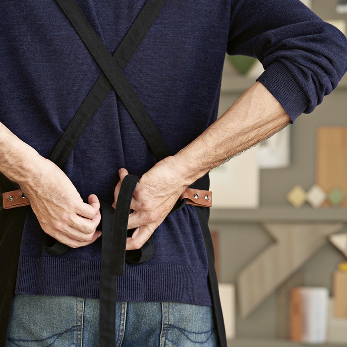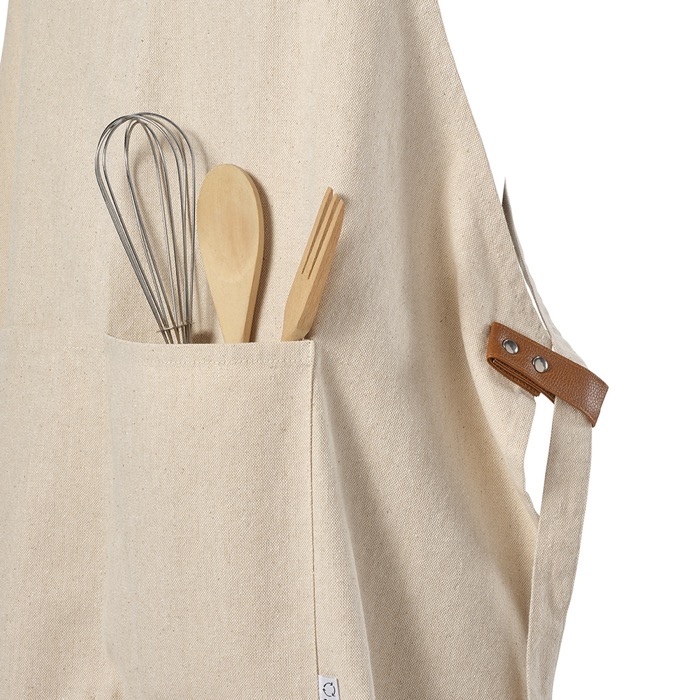 Prepare sus comidas con estilo con nuestro delantal de algodón reciclado y detalles de PU