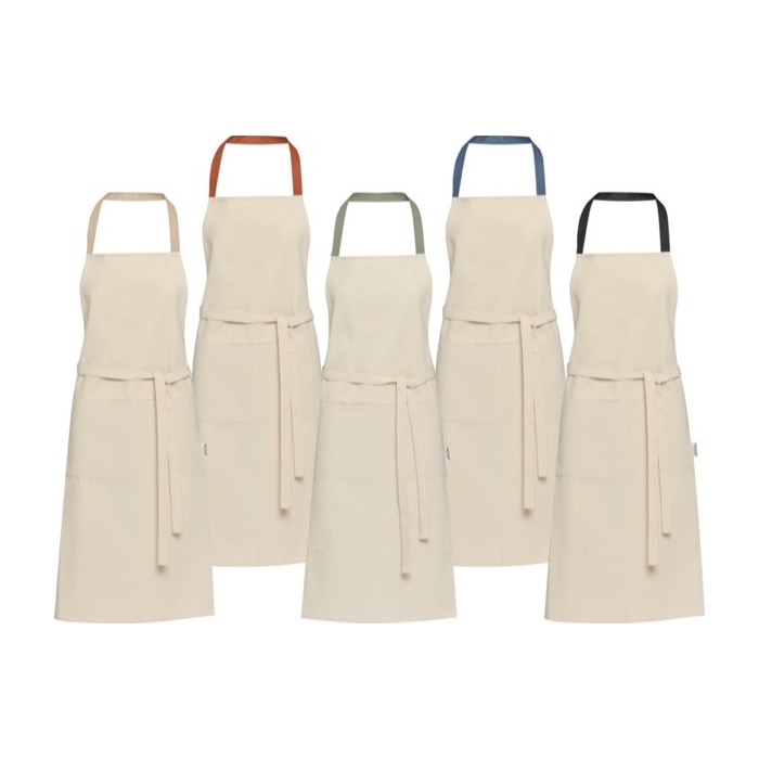 Delantal de algodón reciclado con cinta de cuello de color 200 g/m2
