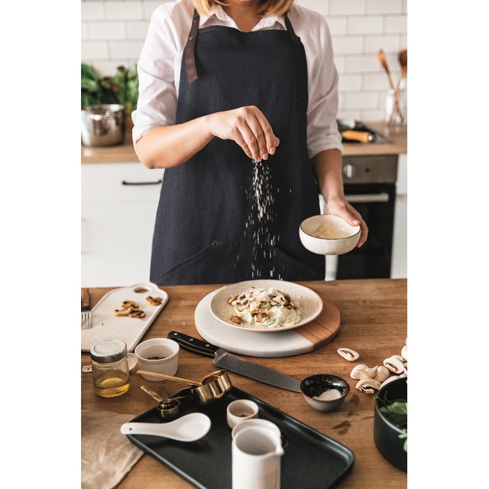 - Delantal de cocina ajustable en tejido denim de 240 gr/m²