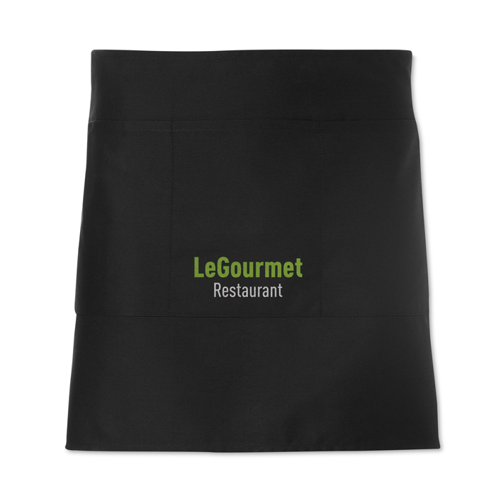 Este delantal de cocina corto, confeccionado con una mezcla de 90% poliéster y 10% algodón, es el complemento perfecto para destacar en eventos gastronómicos. Su diseño moderno y profesional no solo realza la imagen de tu marca, sino que también ofrece una excelente oportunidad de personalización, permitiéndote imprimir tu logo de manera destacada y elegante. Este delantal también es ideal para bares y restaurantes que buscan proyectar una identidad coherente y sofisticada, mientras demuestran su compromiso con la sostenibilidad mediante el uso de materiales duraderos y de alta calidad. Considera este delantal como una solución promocional que no solo atraerá la atención, sino que también proporcionará un valor a largo plazo para tu empresa.