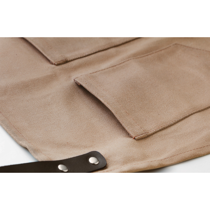 Delantal de lona encerada con correas de piel para eventos comerciales