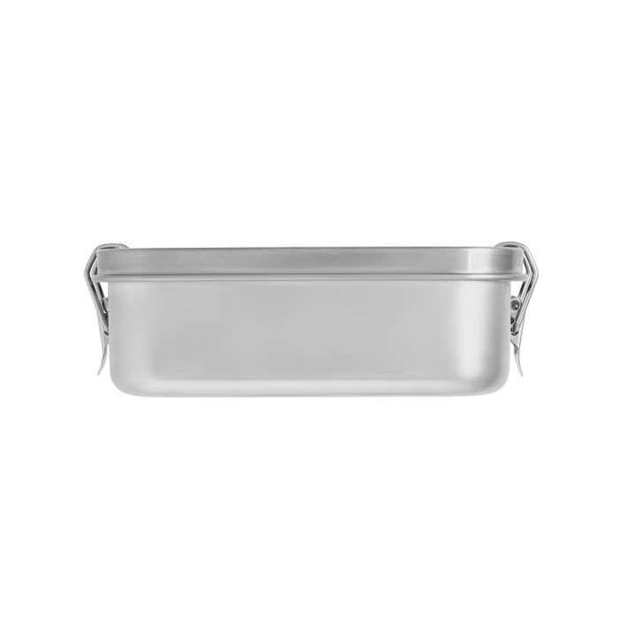 Robusta caja hermética fabricada en acero inoxidable(90% reciclado) con hebillas laterales de seguridad. Capacidad hasta 750 mL. Se entrega en una caja de regalo de papel Kraft