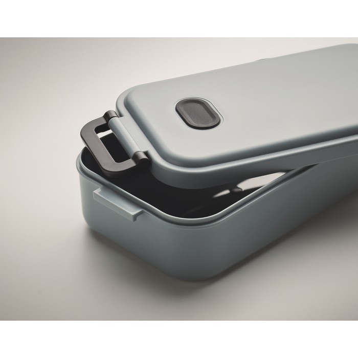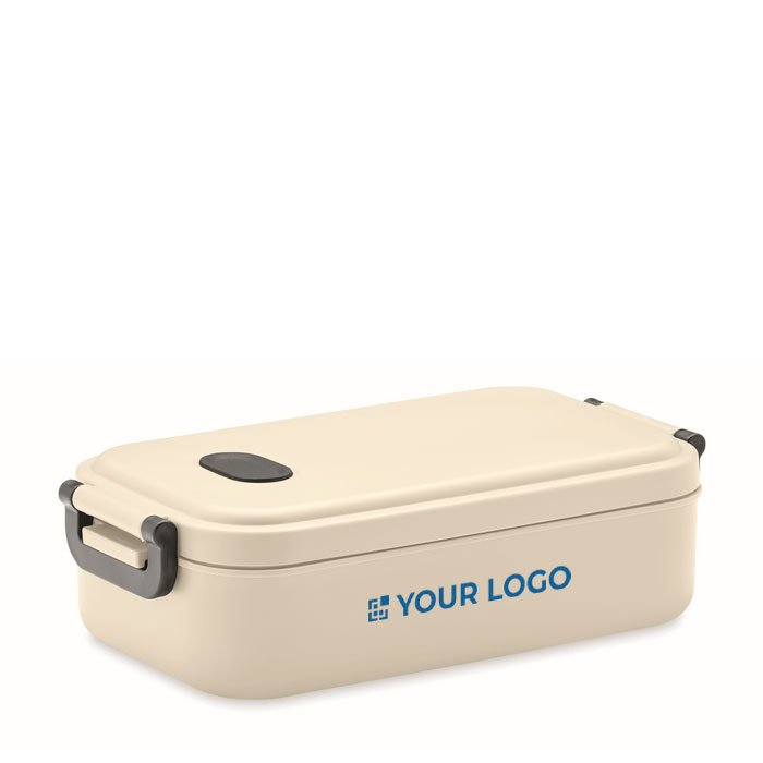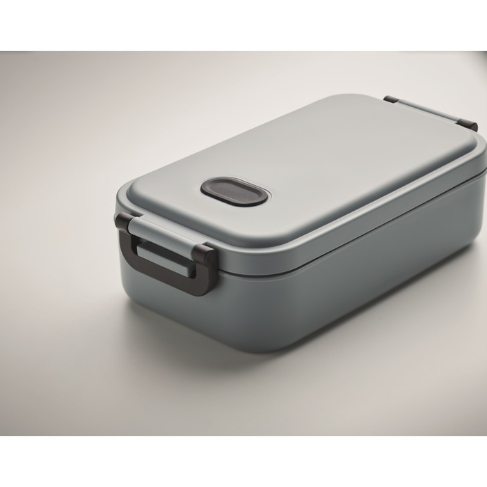 Fabricada en plástico PP reciclado, esta fiambrera de 800 ml de capacidad es un regalo original, útil y práctico para aquellos trabajadores que comen en la oficina o fuera de casa. Destaca, principalmente, por su tapa hermética con válvula de silicona y dos cierres laterales, la cual evita derrames o aperturas inesperadas y permite que el recipiente pueda ponerse en el microondas. Personalizable con tu logo tanto en la tapa como en los laterales, es apta para lavavajillas. Sin embargo, te recomendamos consultar con atención al cliente hasta qué punto es compatible con dicho electrodoméstico la impresión que le apliques.