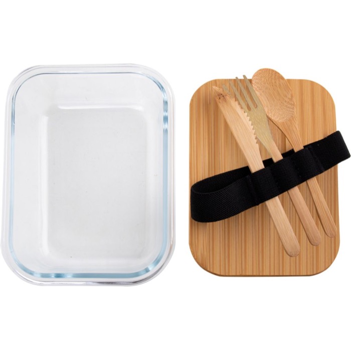 Fiambrera de cristal con tapa y cubiertos de bambú 700ml Eco Glass