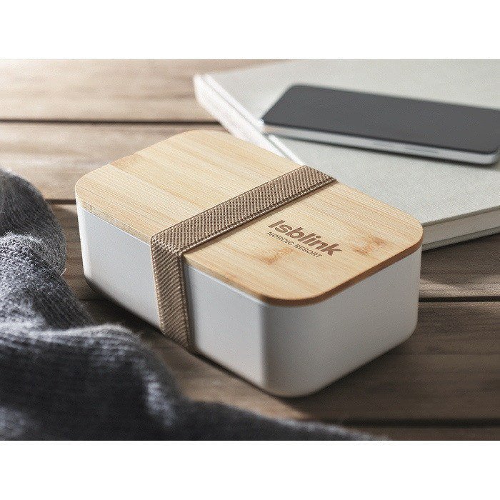 Fiambrera corporativa con tapa de bambú con logo 1L Mix Bamboo