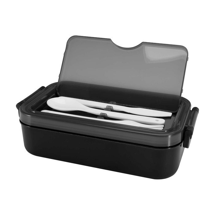 Fiambrera de plástico con cubiertos a juego y amplio compartimiento