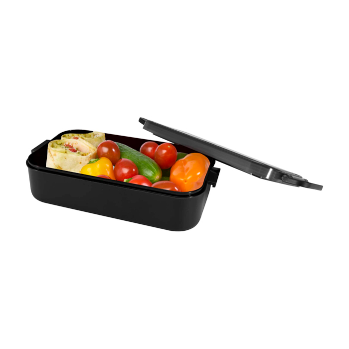 Fiambrera de plástico con set de cubiertos a juego, diseñada para optimizar la hora de la comida en entornos laborales. Su amplio compartimento de 1000 ml asegura que los alimentos se mantengan frescos y bien organizados durante toda la jornada. En la parte superior, un espacio independiente permite guardar los cubiertos incluidos, evitando desorden y facilitando su uso. Su diseño práctico y fácil de transportar la hace ideal para llevar al trabajo, al colegio o en viajes de negocios. Suministrada en bolsa de plástico, ofrece un servicio Express para entregas rápidas. Perfecta para empresas que buscan soluciones eficientes para el almuerzo de sus empleados o como parte de un kit de bienvenida corporativo.