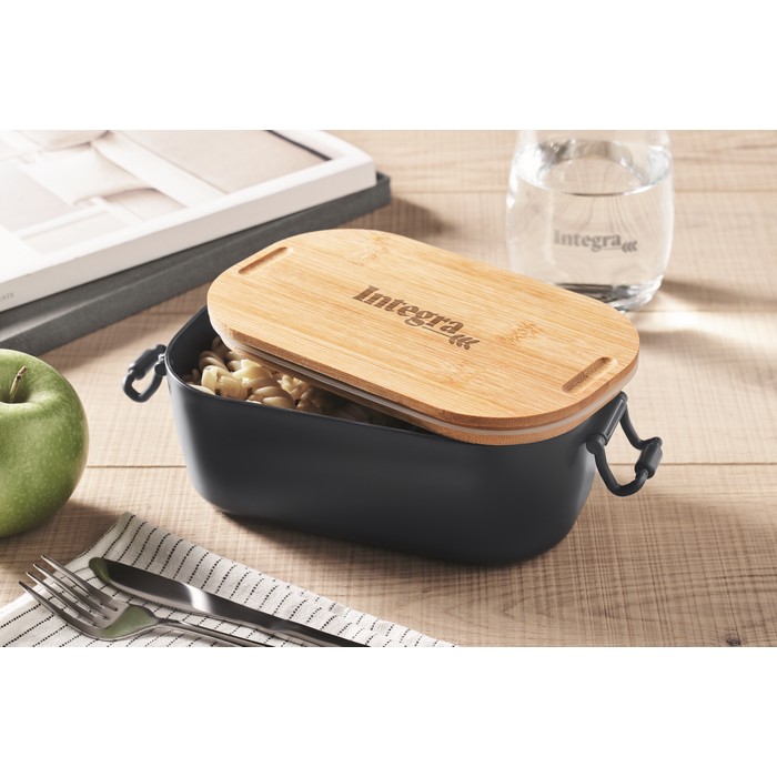 Fiambrera corporativa con tapa de bambú con logo 1L Mix Bamboo