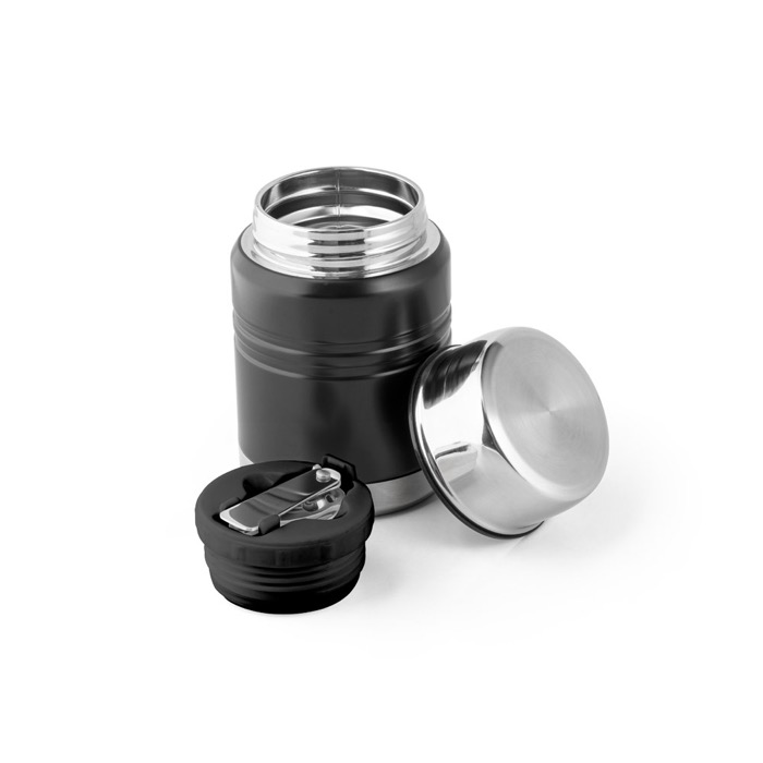 Ofrece un termo de acero con aislamiento al vacío para mantener las comidas a su temperatura óptima durante horas. Su diseño de doble pared y la cuchara plegable integrada lo hacen útil para cualquier aventura o día de oficina. Con una capacidad de hasta 550 ml, proporciona una solución versátil y de alta calidad. Al entregarlo, demuestras atención a la comodidad de tus clientes o empleados. Tu logotipo, presente en un producto tan práctico y duradero, asocia tu marca con la fiabilidad. Se suministra en una caja kraft.