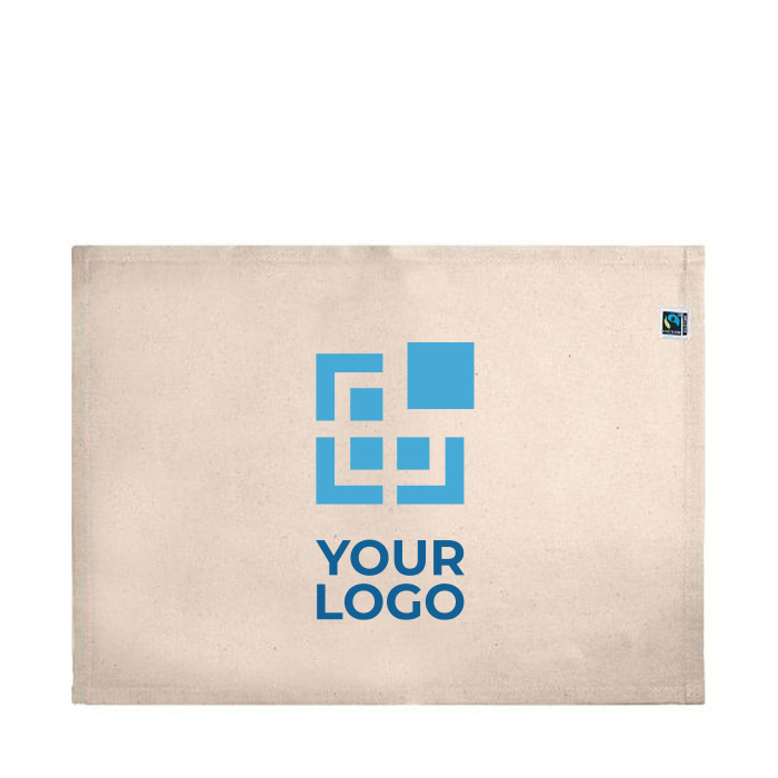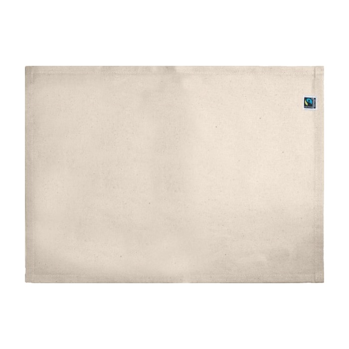 Mantel para mesa en formato individual perfecto para regalar a propietarios de nuevos hogares, compradores de muebles o mesas o como parte del merchandising o equipación de negocios de restauración y hostelería. Está fabricado con algodón de 140 gr/m2, por lo que es resistente a desgarros y capaz de proteger bien las superficies de cualquier mancha. Además, cuenta con la certificación ética Fairtrade, que garantiza que los productos cumplen con estándares sociales, económicos y ambientales para apoyar a pequeños productores y trabajadores de países en desarrollo. ¡Personalízalo con tu logotipo y promociona tu marca de una forma útil y original!
