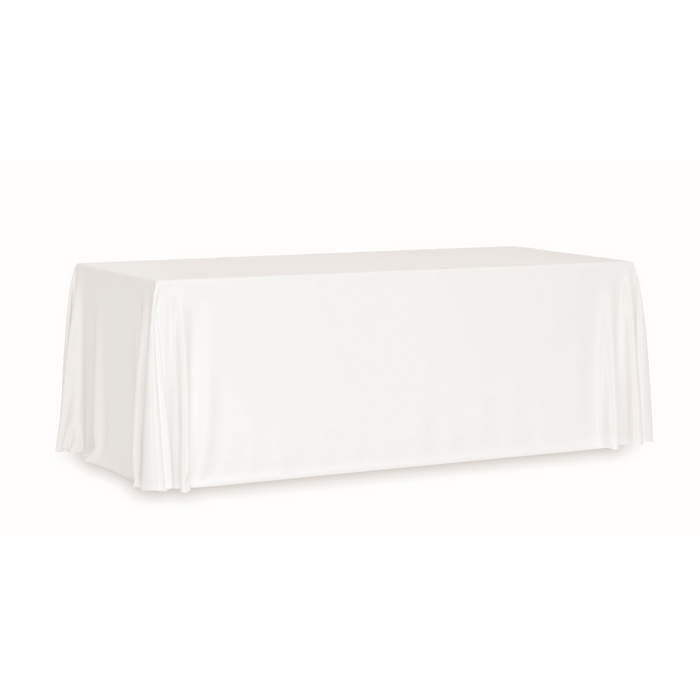 Proyecta profesionalidad y elegancia en tus eventos con un mantel rectangular de poliéster de gran tamaño (280x210 cm). Con un gramaje de 180 gr/m², este mantel es resistente y duradero, ideal para presentaciones de empresa, ferias y exposiciones. Tú lo puedes utilizar en conferencias, eventos de marketing, banquetes o fiestas, donde desees una presentación impecable. Así, tu marca se asocia con la organización, la calidad y la atención al detalle, generando una impresión positiva y duradera en tus asistentes y clientes. Es un soporte visual efectivo.