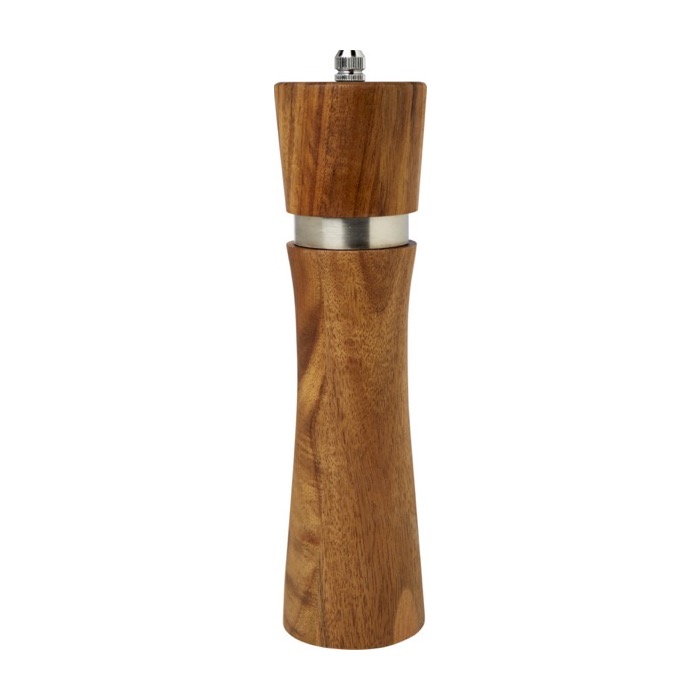 Un molinillo de pimienta o sal con capa de madera y mecanismo cerámico te permite ofrecer un utensilio de cocina de alta calidad. Con madera de acacia, este molinillo destaca por su durabilidad y elegancia. Tú podrás moler especias con un giro suave y cómodo, gracias a su diseño ergonómico, realzando el sabor de tus comidas. Este objeto es un regalo apreciado, especialmente en eventos gastronómicos, que asocia tu marca con la excelencia culinaria. Tu logotipo, presente en este molinillo, mantendrá una visibilidad constante en las cocinas de tus clientes, reforzando tu imagen como un referente de buen gusto y practicidad.