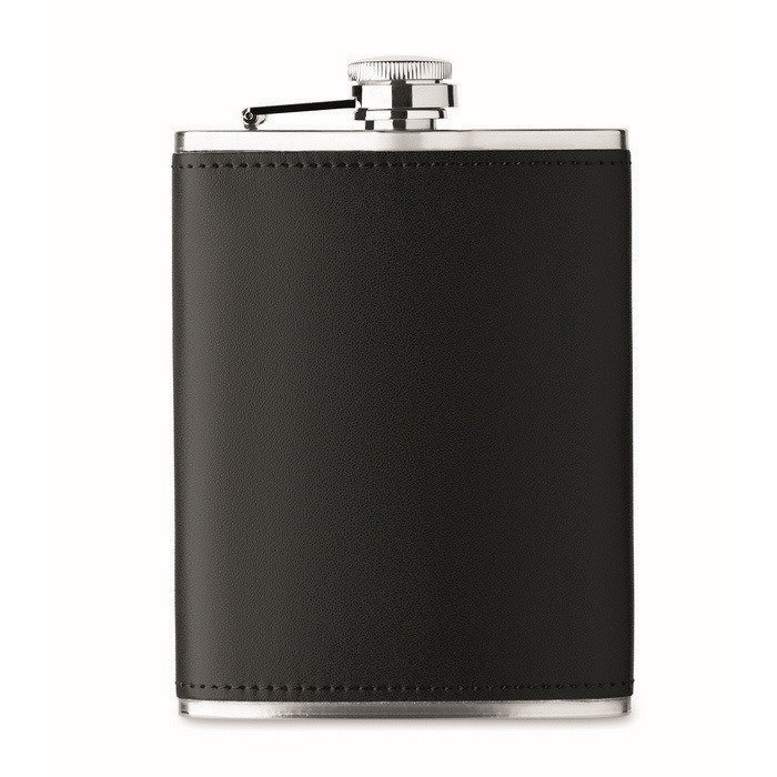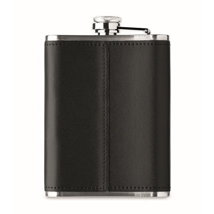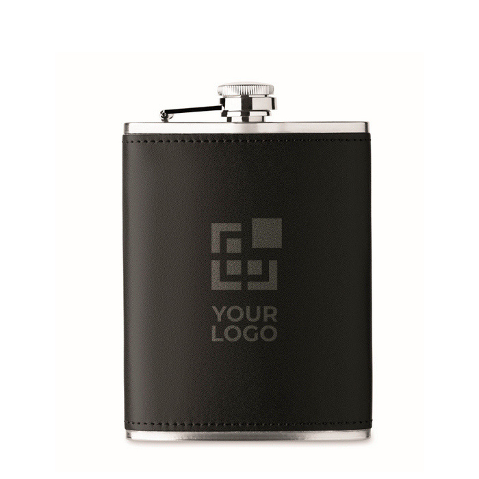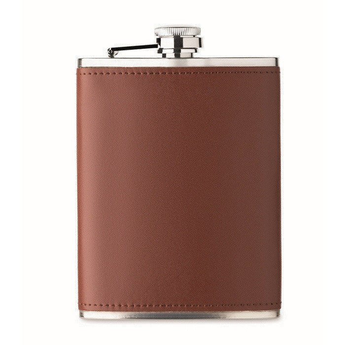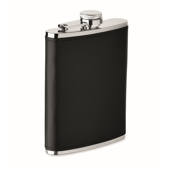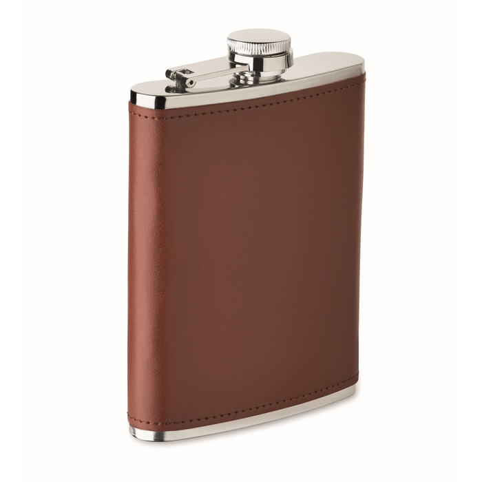 Petaca de acero inoxidable con revestimiento de cuero sintético 200ml