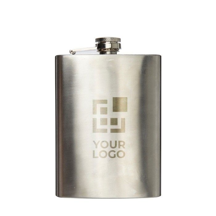 Petaca promocional de acero inoxidable con tapón a rosca 240ml