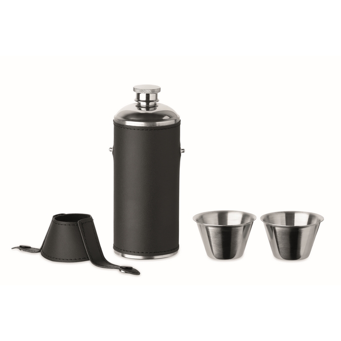 Petaca de acero inoxidable con 2 vasos de chupito 230ml y 20ml