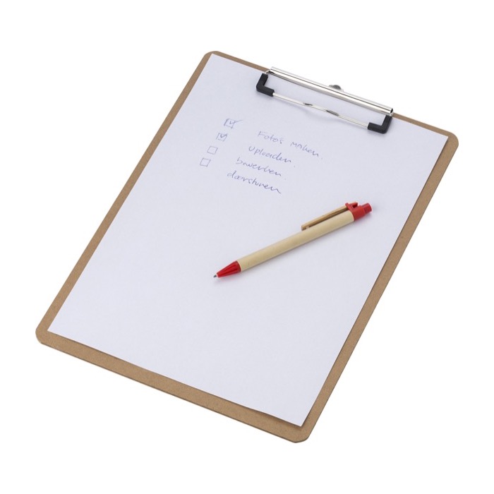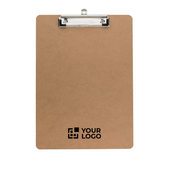 En todos los sectores se celebran actos corporativos o comerciales. Incluso, en algunos, se llevan a cabo jornadas de prueba y evaluación de candidatos o estudiantes. Pero, ¿qué tienen todos estos acontecimientos en común? Que requieren una impoluta organización. Para ello, es esencial equipar al staff y al equipo de la organización con un portapapeles, ya que facilita la toma de notas, los apuntes en listas y el relleno de formularios sin necesidad de una mesa o punto de apoyo. En este sentido, este modelo personalizable con clip metálico hecho a partir de fibras de madera prensadas y unidas con resina (MDF) es una excelente opción para llevar hojas A4 o más pequeñas. Y para mayor cohesión visual de la organización, personalízalos con tu logo mediante serigrafía o tampografía en cualquiera de las dos caras.