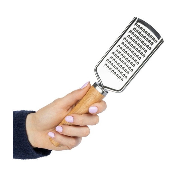 - Rallador de madera y acero inoxidable con mango ergonómico